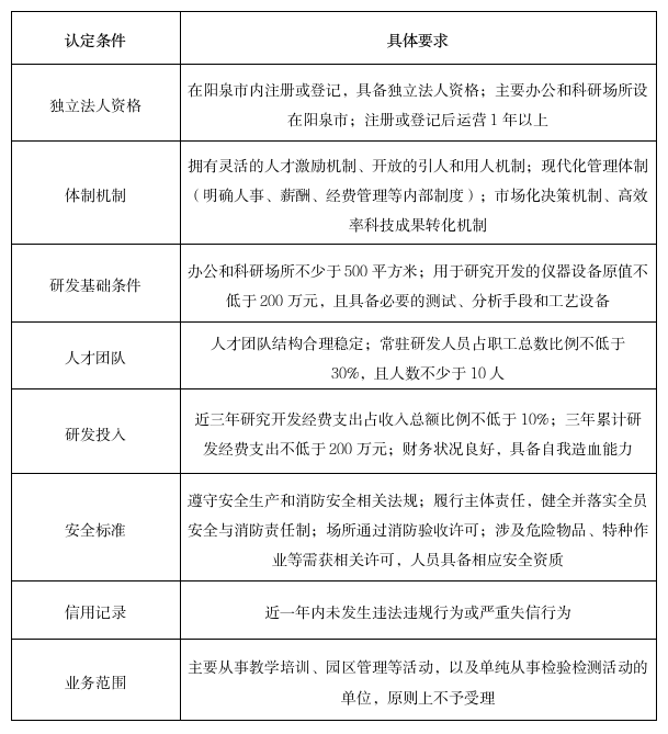 同时,此类机构需具备五大核心能力:科学自主的创新组织模式、高效协同的科技攻关优势、市场导向的成果转化链条、灵活有效的人才激励机制、多元持续的资金投入保障,并围绕阳泉市产业需求,开展应用基础研究、产业共性关键技术研发、产品开发等创新活动。