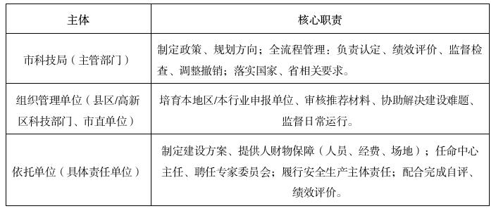 《办法》明确了了市科技局、组织管理单位、依托单位的职责: